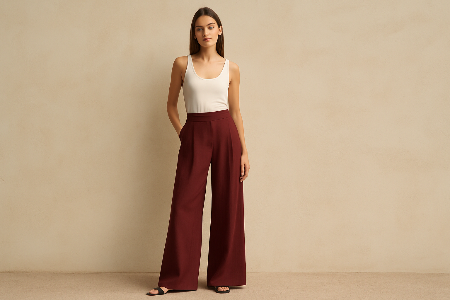 Die Hannah Leinenhose in Burgund kombiniert hochwertige Leinenqualität mit einer eleganten, zeitgemäßen Passform. Die warme Farbe sorgt für stilvolle Ausstrahlung und atmungsaktiven Tragekomfort.